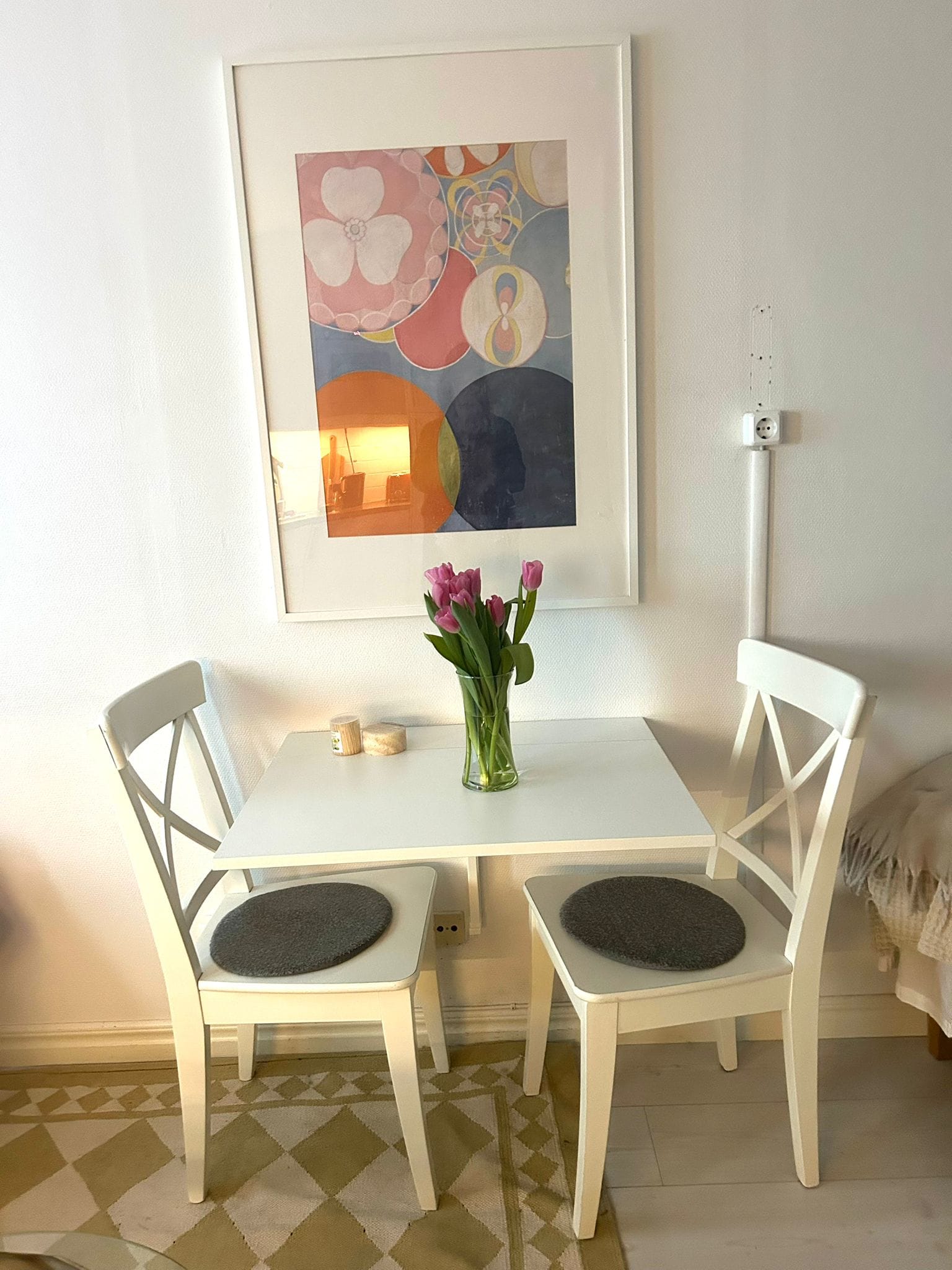 Samtidigt väntar en lugn innergård och en hemtrevlig lägenhet där tempot får sjunka.