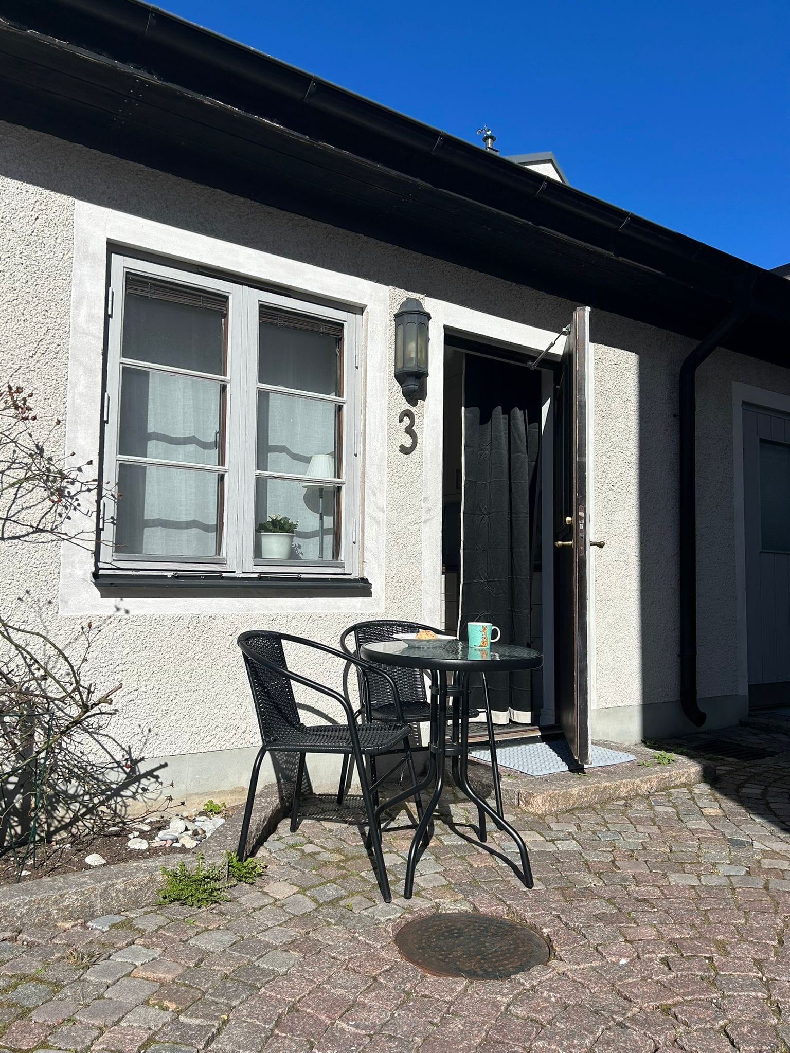 Lägenheten ligger mitt på Adelsgatan, med kullerstensgator, restauranger och caféer runt hörnet vid Södertorg.