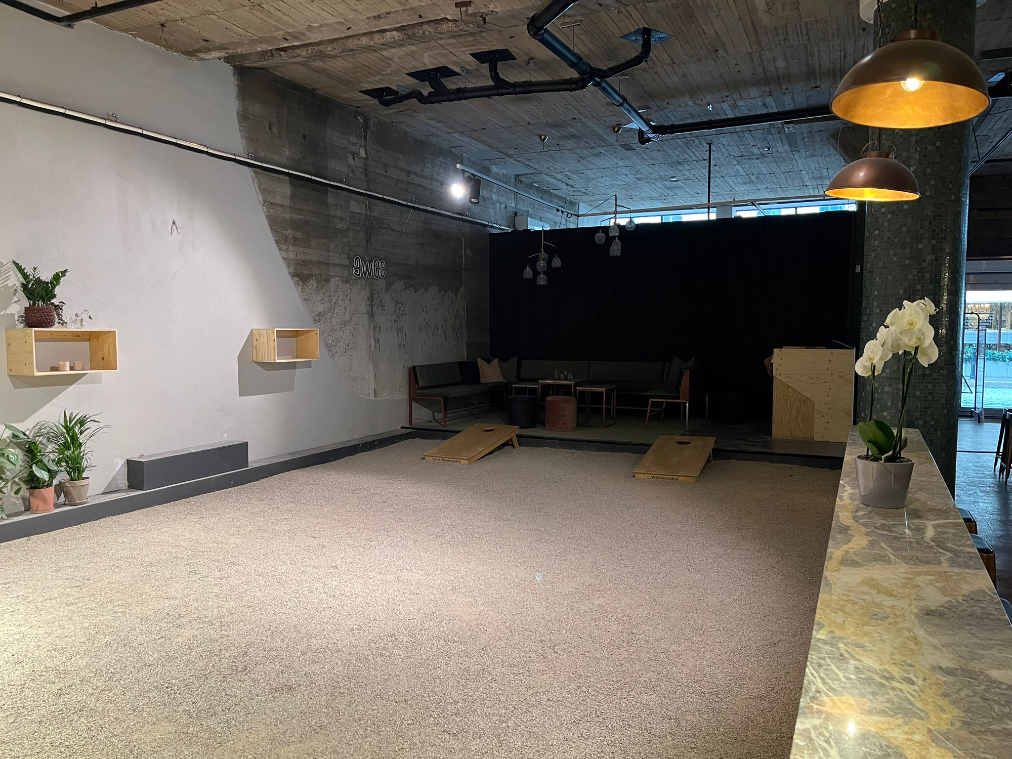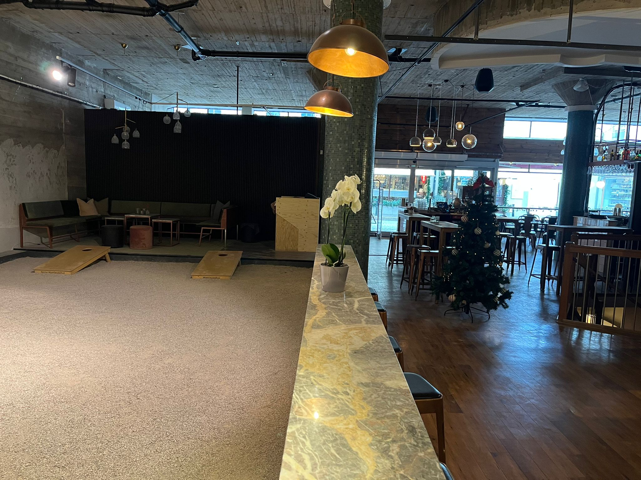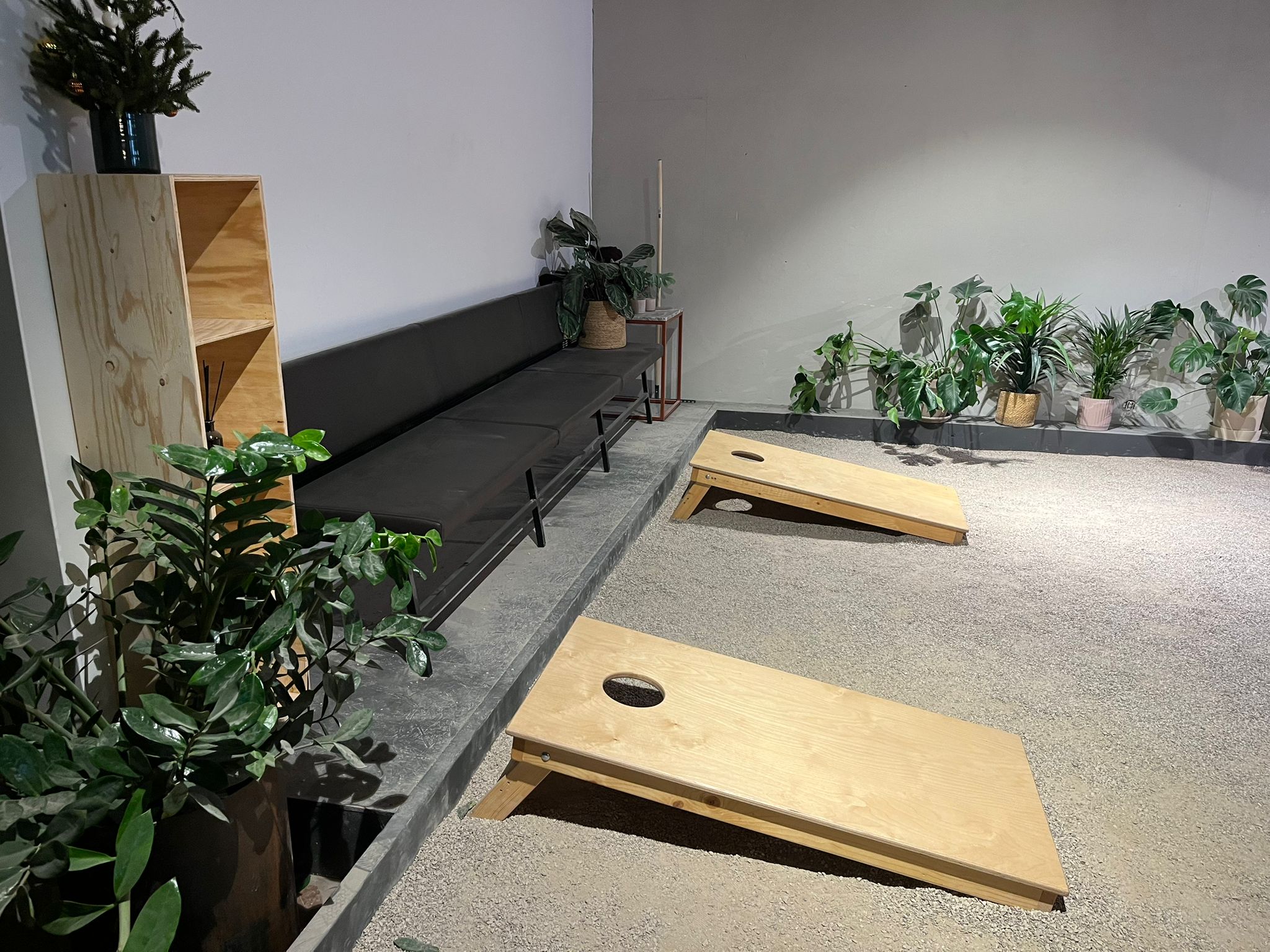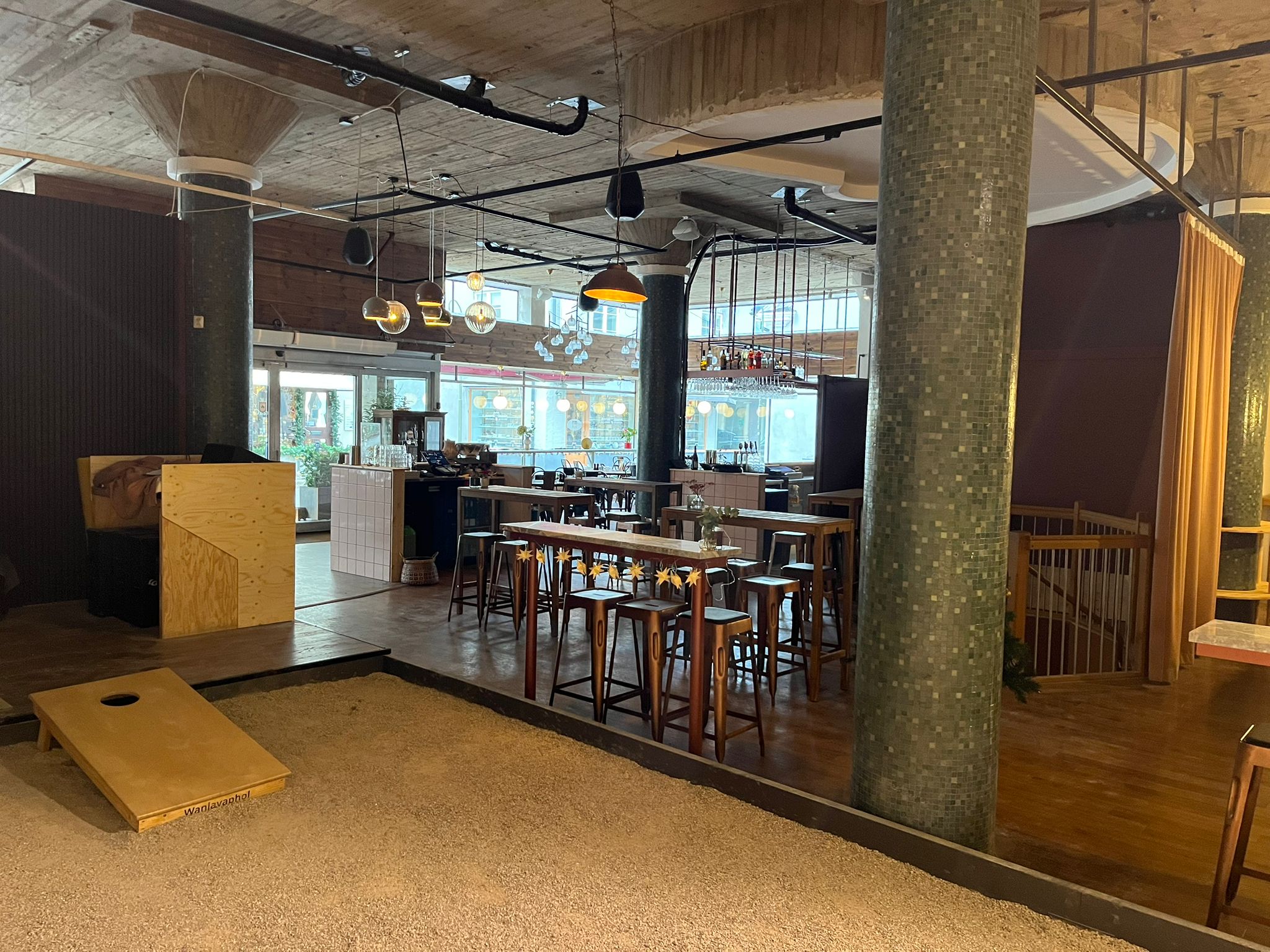 Mat och dryck finns tillgängligt på plats och förenklar logistiken rejält. Dessutom skapar aktiviteter som cornhole, dart och shuffleboard naturliga pauser och avslappnade möten mellan deltagarna.
