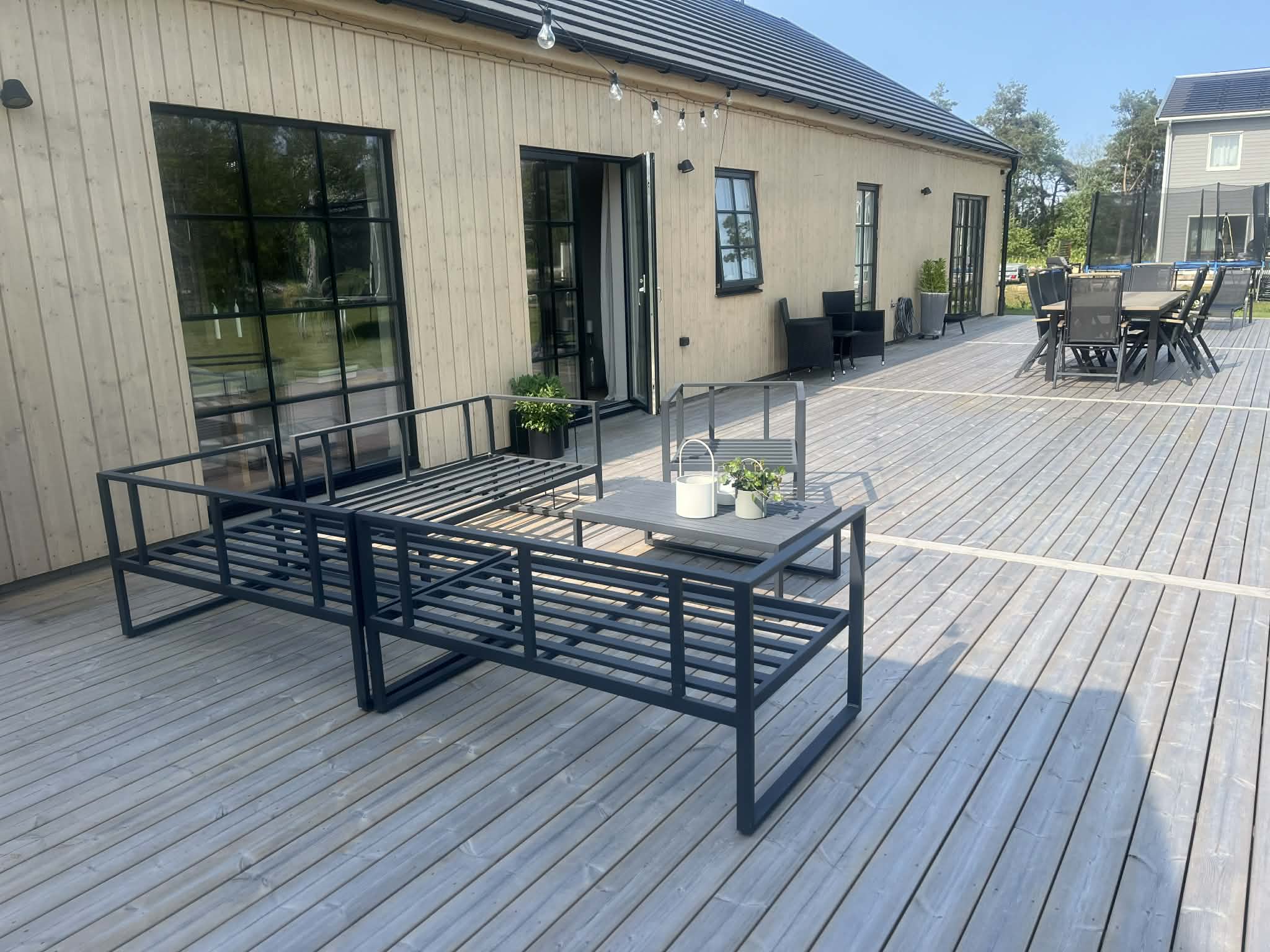 - Utrustad med loungemöbler, matbord och två solsängar