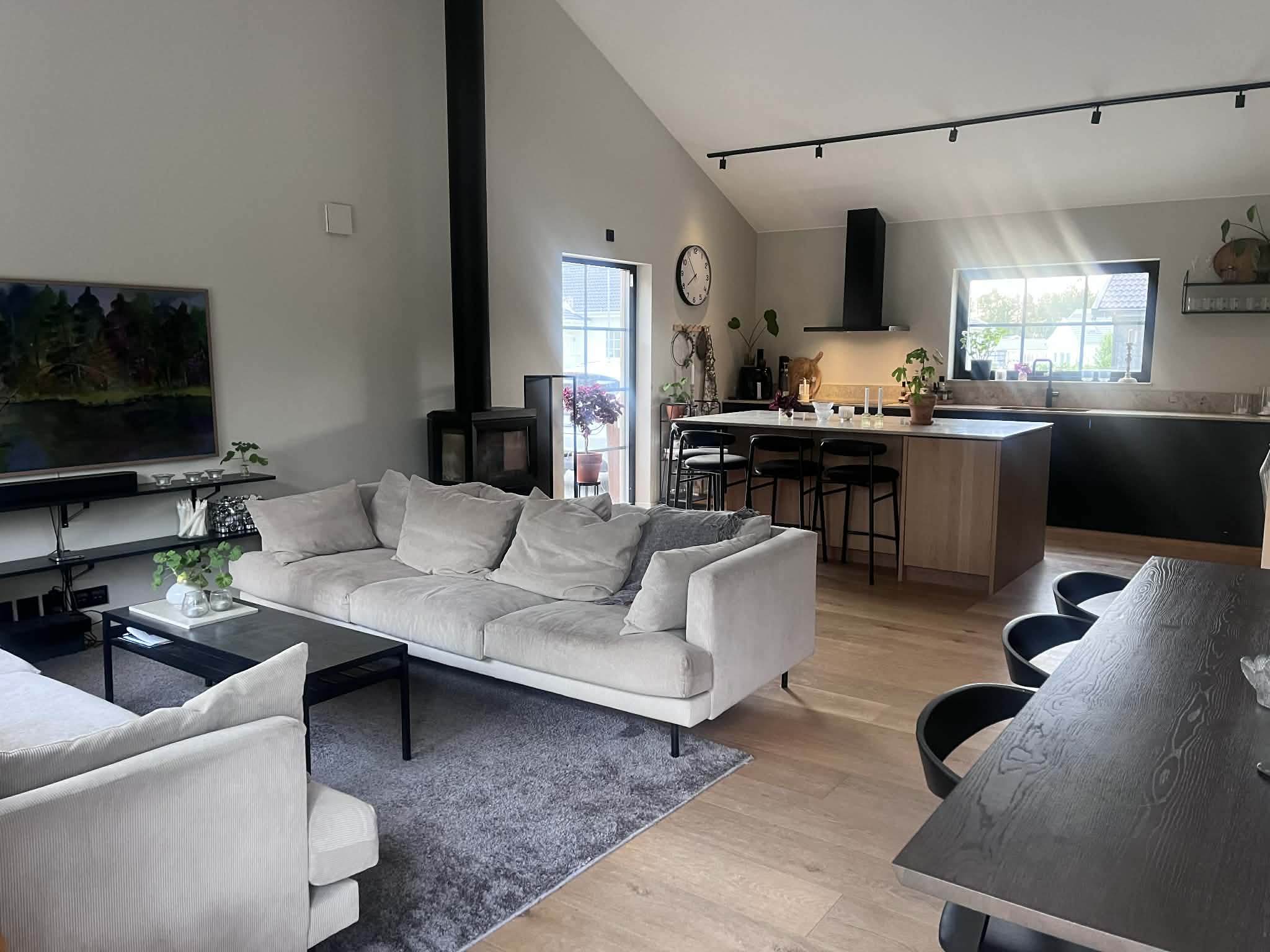 Planlösningen skapar naturliga ytor för både vila och samtal.