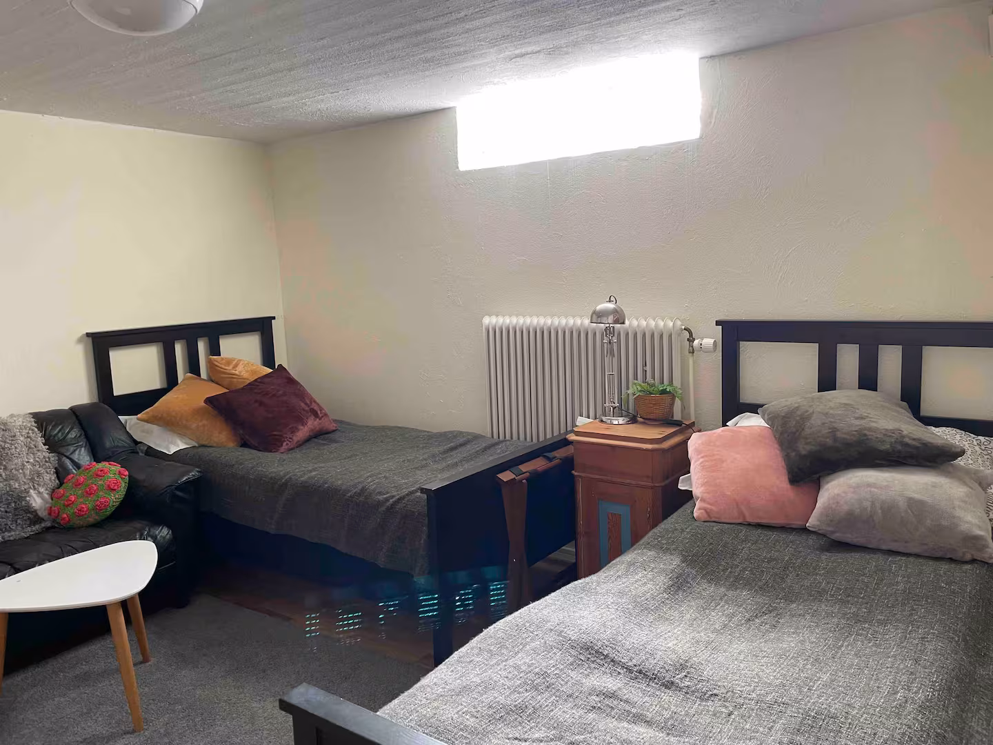 3 rum med två bäddar i varje (i ett av rummen finns en bäddsoffa)